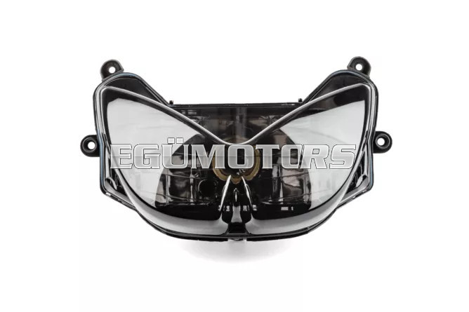 STR8 fekete első lámpa Yamaha Aerox/MBK Nitro robogó modellekhez. Az első lámpa a piacon, melynek a búráját megszínezték. Az enyhén fekete búra különleges kinézetet biztosít a robogónak. Legjobb hatást akkor érhetünk el, ha az STR8 Black-Line hátsó lámpa szettet is beépítjük.