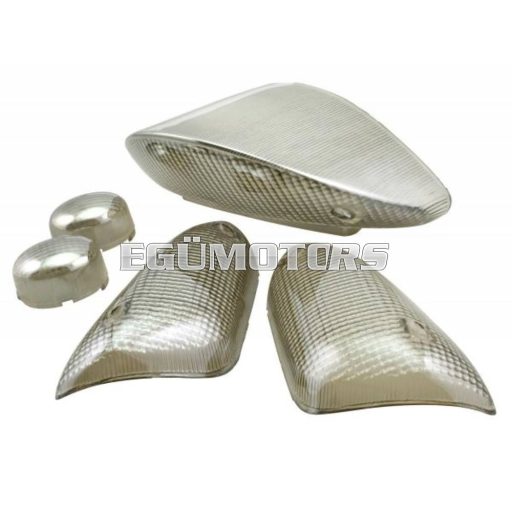 Komplett index és lámpabúra szett, egy vékony krómozott hatású rétegnek köszönhetően tükrös-fényes felületű.