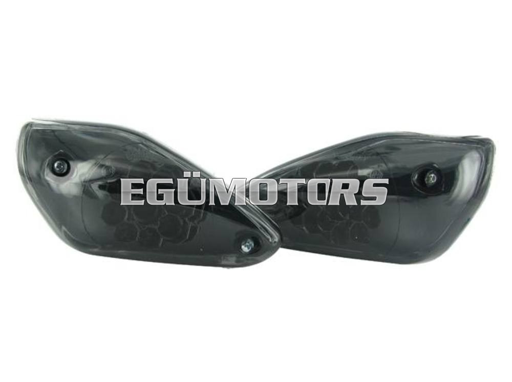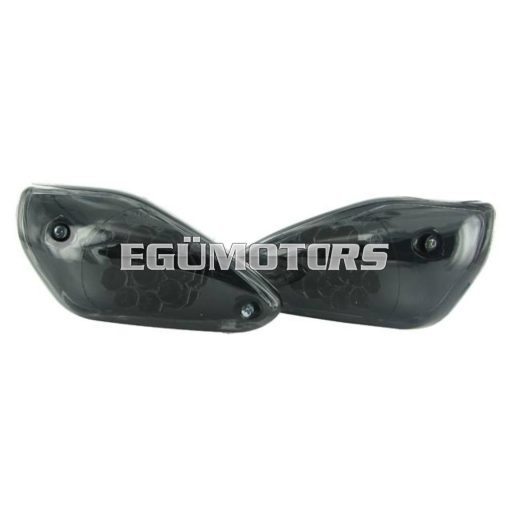 STR8 ledes, komplett, fekete színű első indexpár. Yamaha Aerox / MBK Nitro robogókra használható az alkatrész.