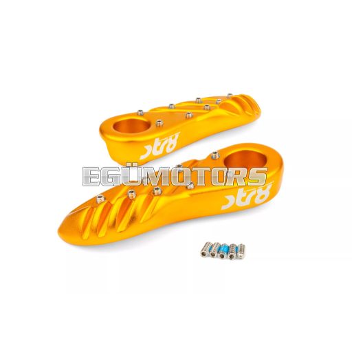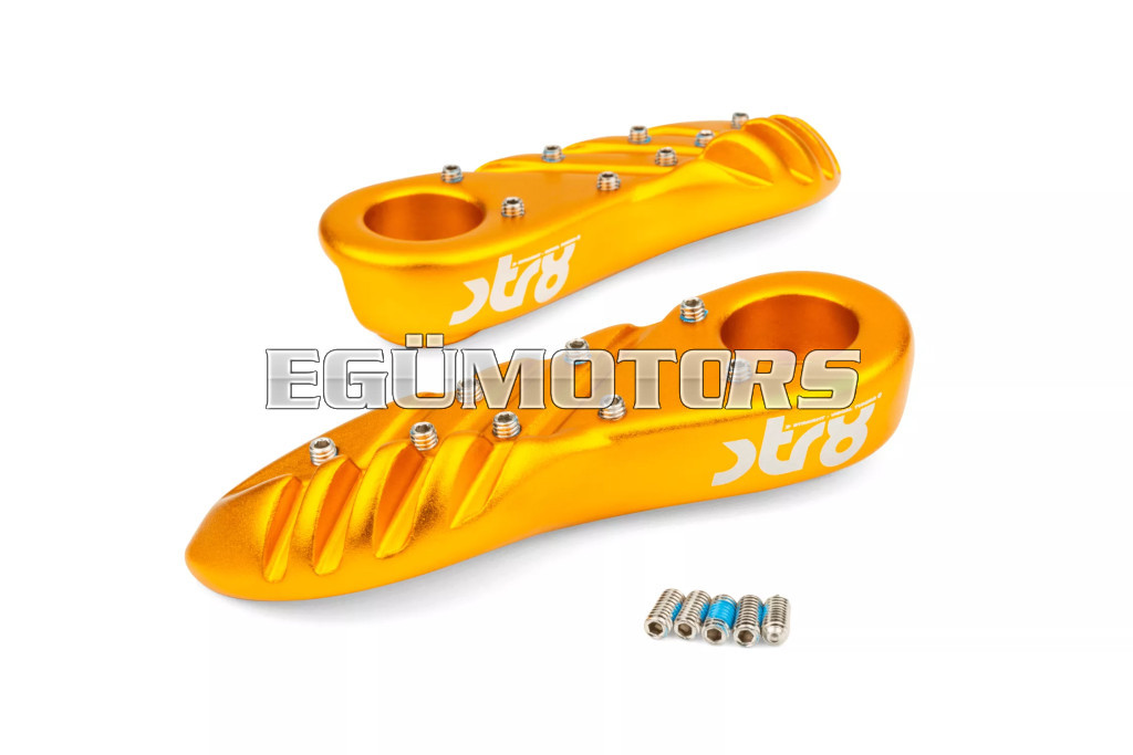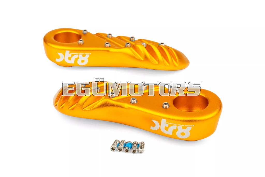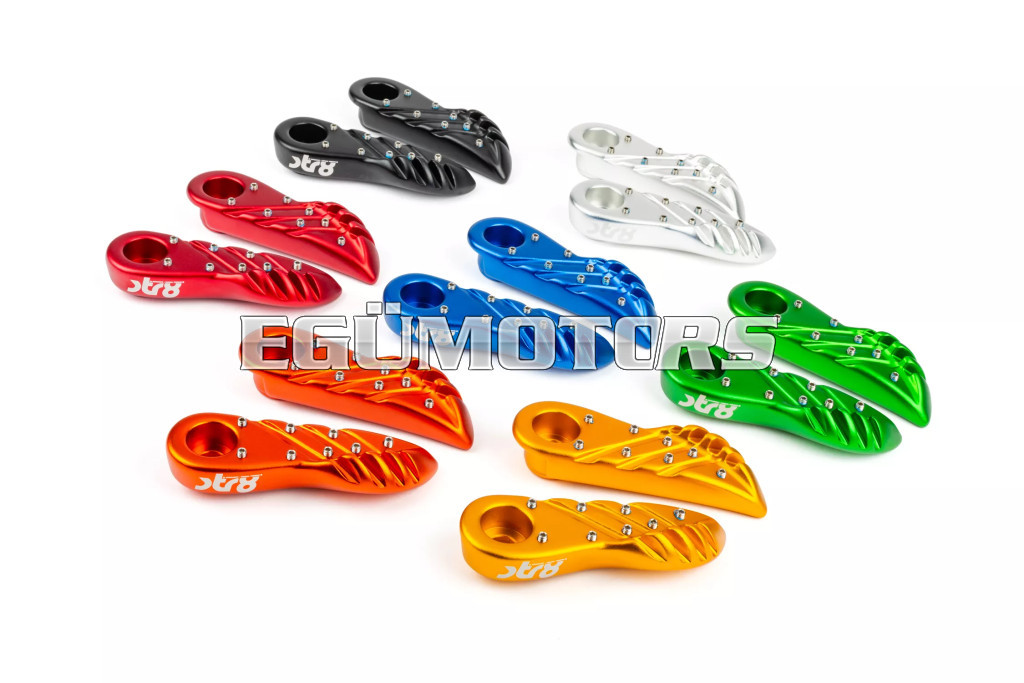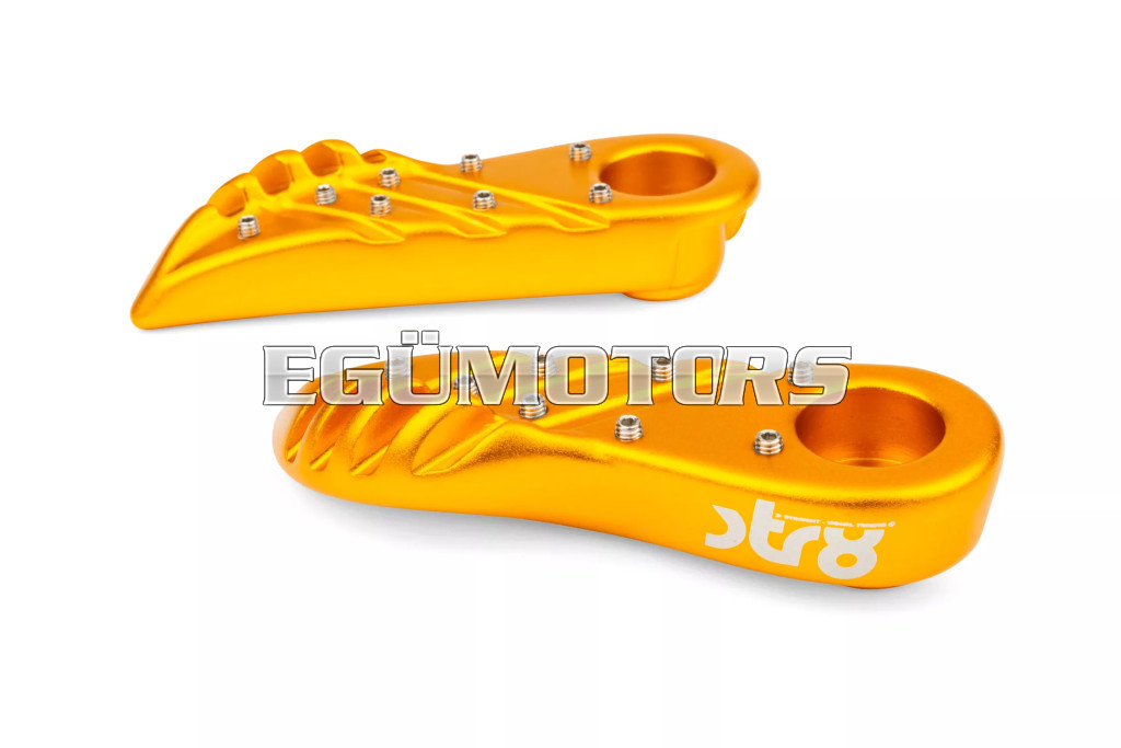 A lábtartók eloxált alumíniumból készültek, lézergravírozott STR8 logóval.