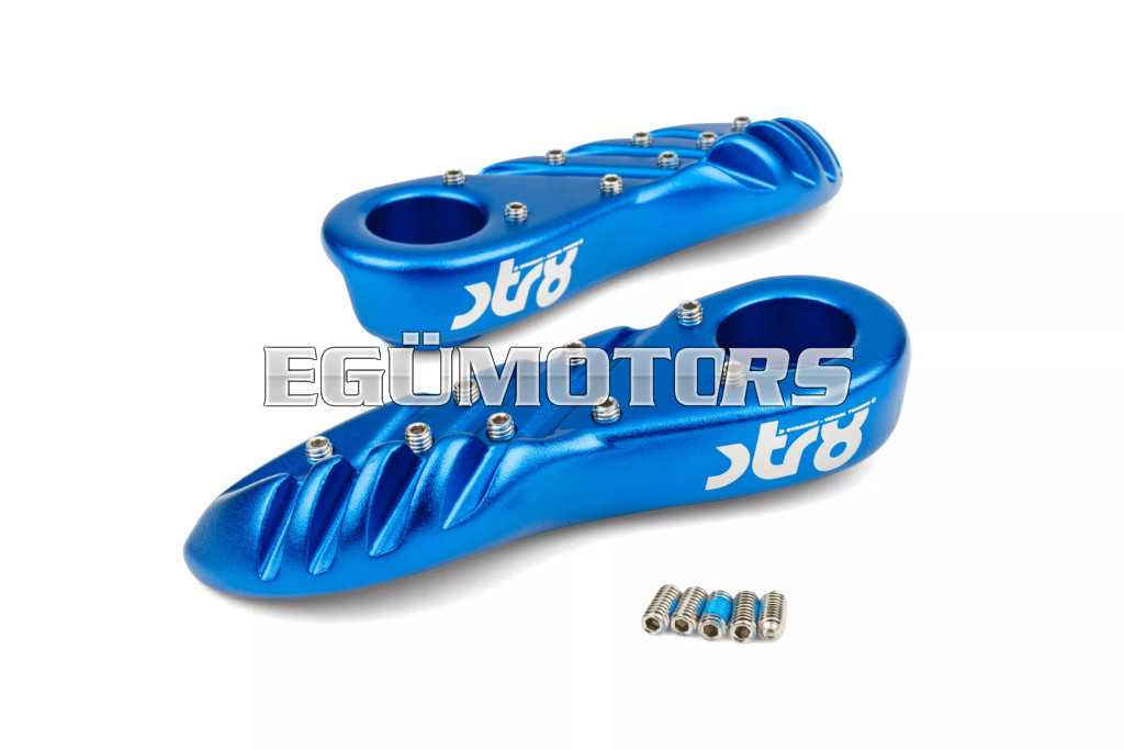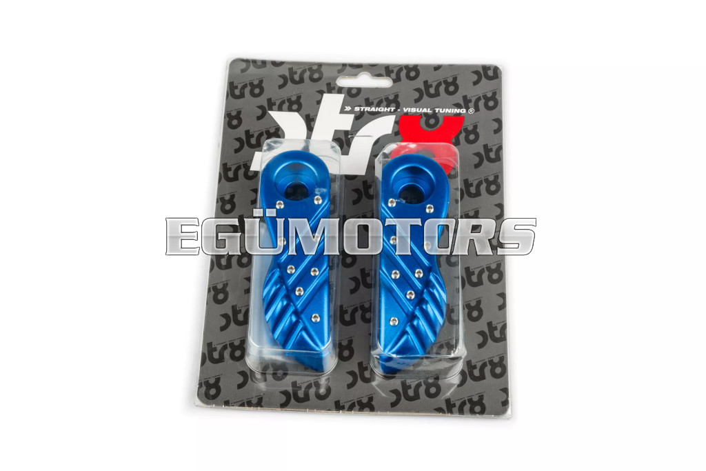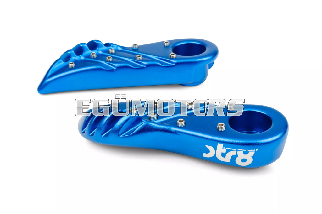 A lábtartók eloxált alumíniumból készültek, lézergravírozott STR8 logóval.