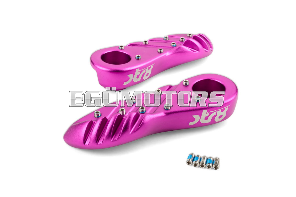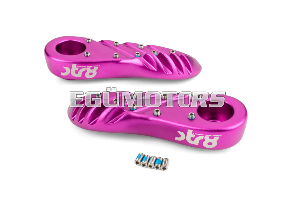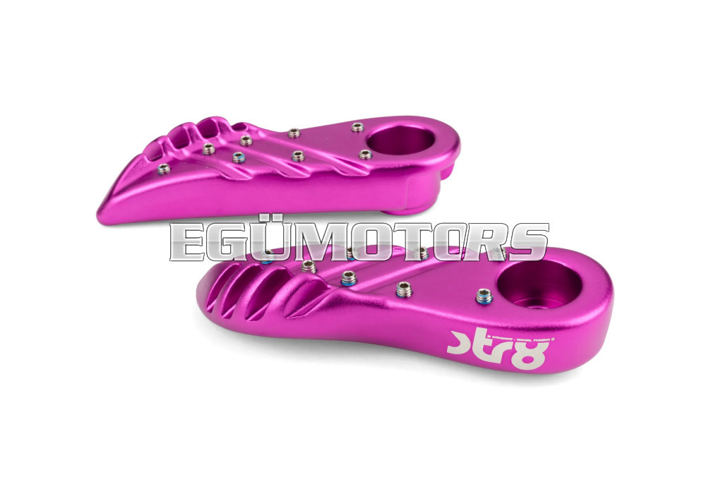 A lábtartók eloxált alumíniumból készültek, lézergravírozott STR8 logóval.