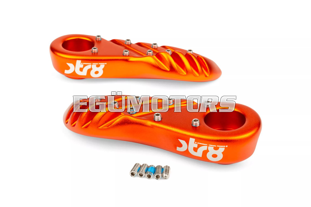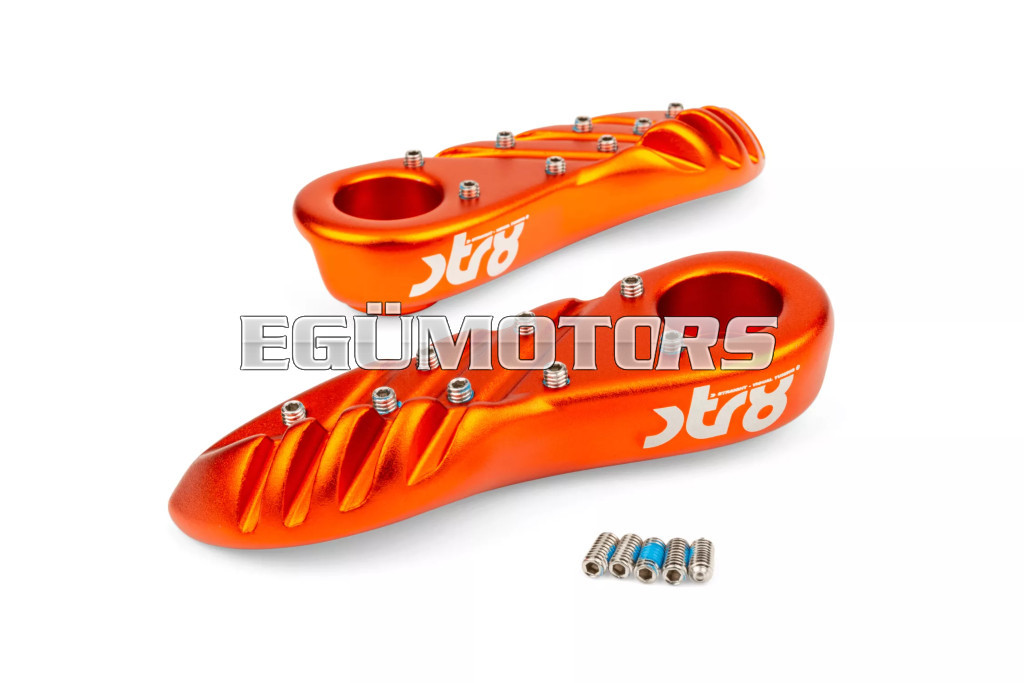 A lábtartók eloxált alumíniumból készültek, lézergravírozott STR8 logóval.