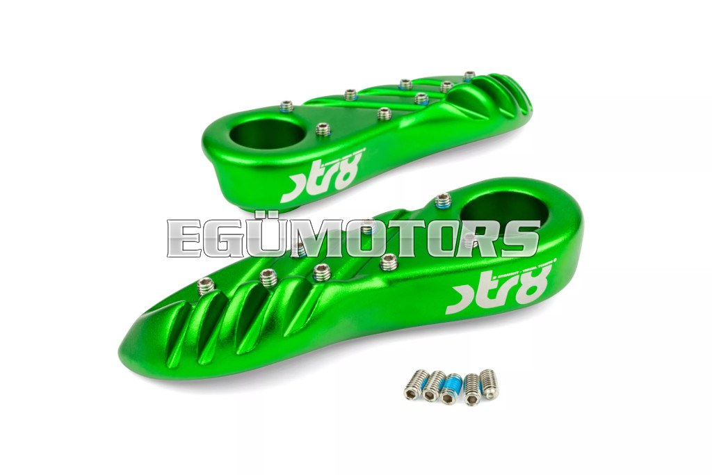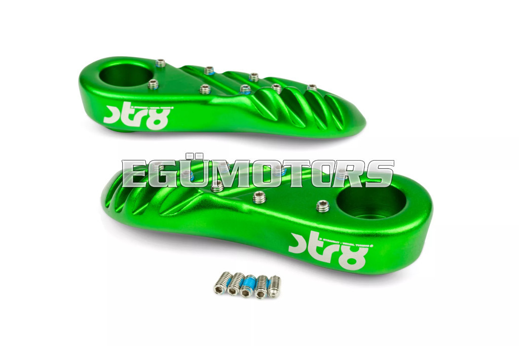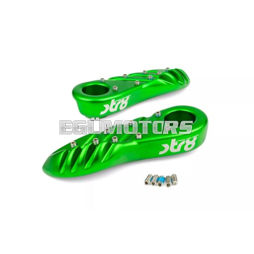A lábtartók eloxált alumíniumból készültek, lézergravírozott STR8 logóval.