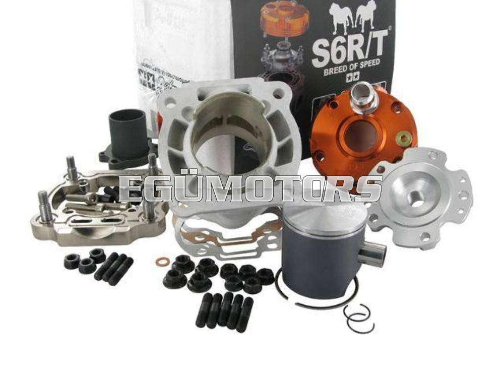Ismert, hogy minden szempontból a rekordot a Stage6 R/T 70ccm henger tartja. Ez a 95ccm-es változat elképesztő teljesítményt ígér és új rekordot a Big Bore kategóriában! Sajnos más tuning alkatrész gyártóknál a "Big Bore" egyszerűen azt jelenti, hogy a henger furata nagyobb. A Stage6 újratervezett kipufogójával és a henger áthelyezett portaival képes felvenni a versenyt a high-end kategória többi Big Bore méretű hengerével. A henger furat 10%-kal növelve lett, így most már 52mm-es. Kombinálva a csaknem 5mm-el hosszabb lökettel, kapunk egy igazán nyomatékos és kellemes fordulatszámon (12.600 RPM) dolgozó hengert. A henger alapból egy meglehetősen szelíd port időzítéssel rendelkezik, így alkalmas mindenféle verseny sorozatra és más célra is. Kijelenthetjük, hogy ez egy ideális kiindulópont tuning szempontjából.