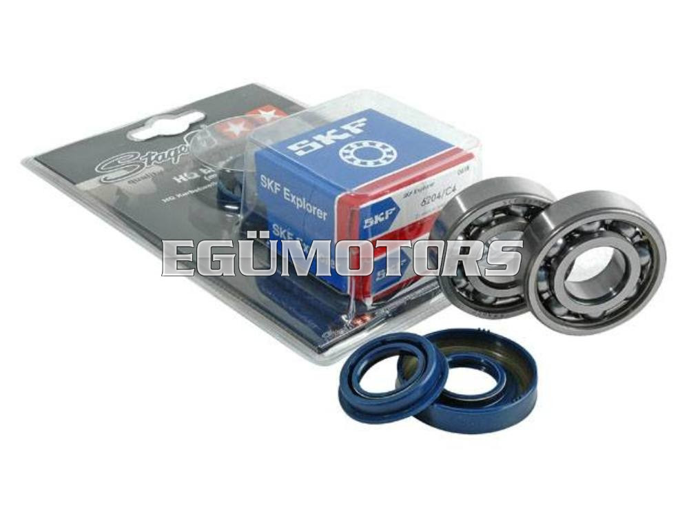 A csapágyakat az SKF, azaz európa vezető gyártója készíti, mely rendelhető fém és műanyag kosaras kivitelben is. 20000 f/min-ig használhatóak. A szimmeringek magas minőségű, Corteco gyártmányúak. Tuningoláskor, főtengely cseréjekor mindig ajánlott a csapágyak és szimmeringek cseréje is!