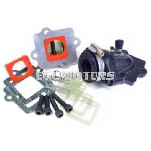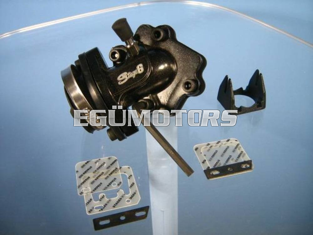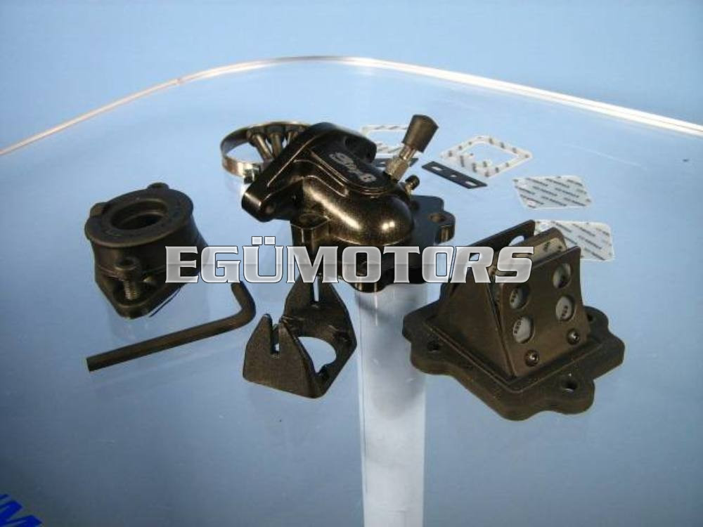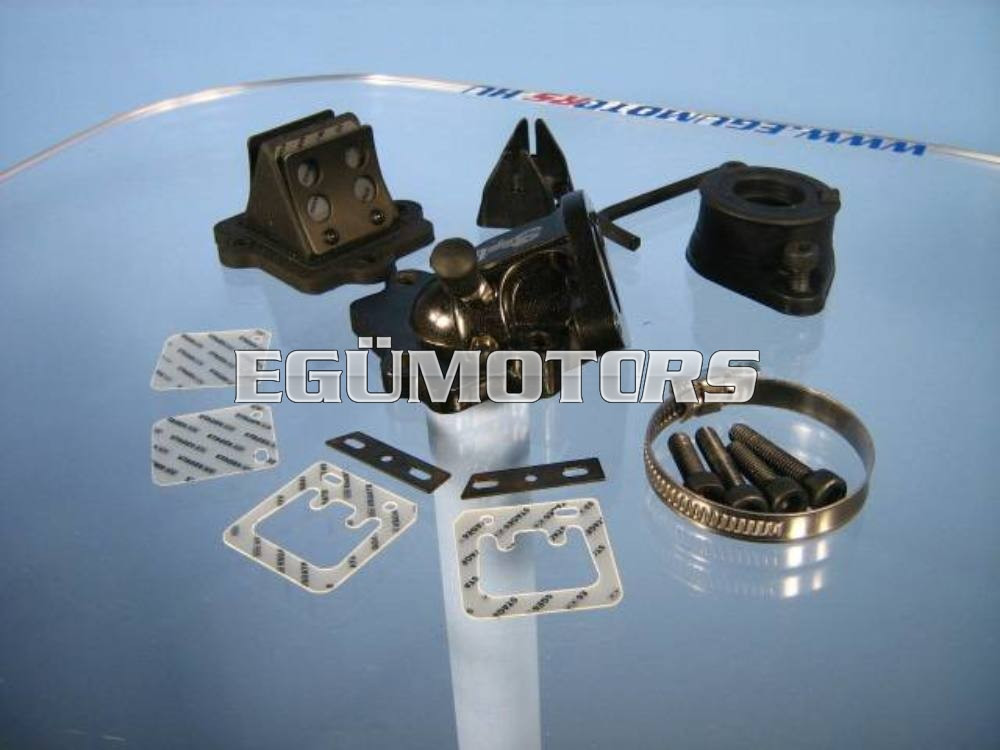 A szállítási szett tartalmaz: egy teflon bevonatú szívócsonkot, olaj és vákuumcsatlakozóval, tömítéseket és vulkanizlált (gumibevonatos) membránházat. Egy nagy kétlapkás membránházzal ellátva és nagyméretű karburátorral társítva (19-től) támogatja ez a rendszer igazán a henger feltöltését, ami a teljesítmény alapfeltétele. 0.35mm-es lapvastagság. A szívócsonkhoz csatlakoztatható gumi-adaptercsonk cserélhető, hogy később át lehessen csonkcsere nélkül állni nagyobb karburátorokra mint: Stage6/Keihin PWK, Stage6/Mikuni TM24 vagy a Koso 28-as karbira. A csomagban megtalálható adapter használható 10-21-es méretű Dellorto karbikhoz, és 17-21-es Arreche karbikhoz.