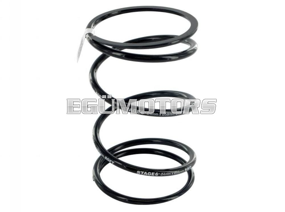Stage6 tuning kontrasztrugó, Peugeot robogókhoz. Azonos méret mellett (4 x 58 mm) úgy értek el különböző erősséget, hogy a menetemelkedést változtatták.