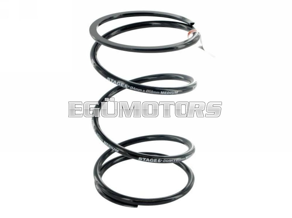 Stage6 tuning kontrasztrugó, Peugeot robogókhoz. Azonos méret mellett (4 x 58 mm) úgy értek el különböző erősséget, hogy a menetemelkedést változtatták.