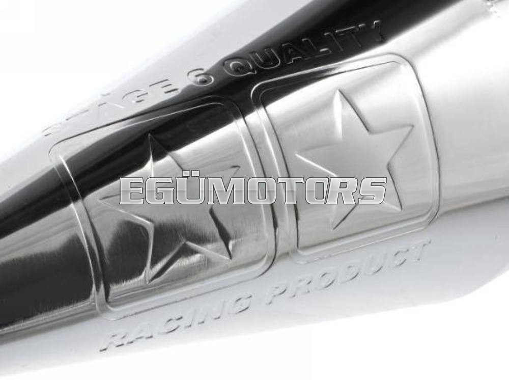 Kitűnő párosítás a Stage6 Sport Pro hengereivel. Jól használható a gyári 50 cm3-es hengerekkel is, kb. 1000 f/min-el emeli az elérhető fordulatszámot. A tökéletes eredmény eléréséhez egy legalább 17.5-es karburátor valamint Stage6 Sport Pro variátor is ajánlott. Rendelkezik CE számmal, legálisan használható, homologizált a 97/24/EC cap.9 direktívák alapján.