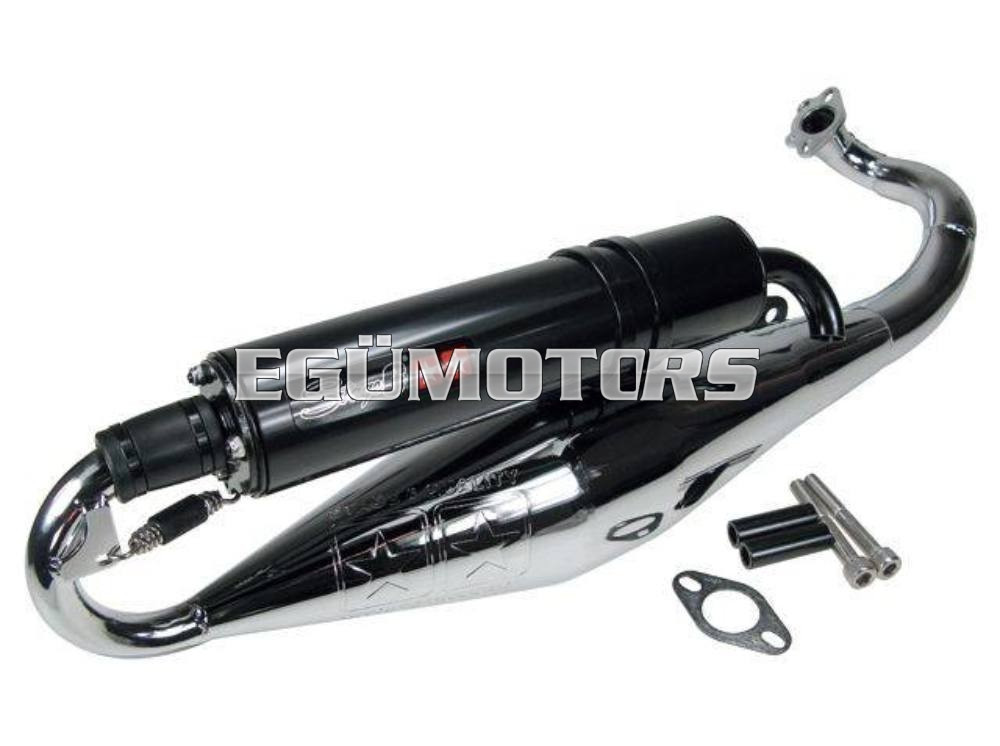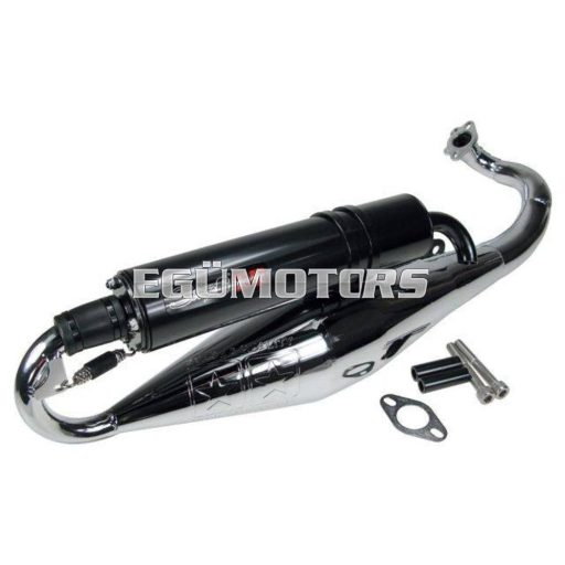 Egy igazán szép kidolgozású és jó teljesítményű sportkipufogó a Stage6-tól. A krómozott test jól ellenáll az időjárás viszontagságainak, ráadásul még mutatós is.