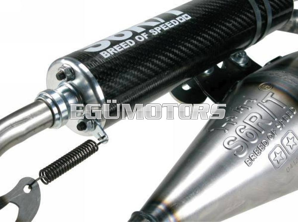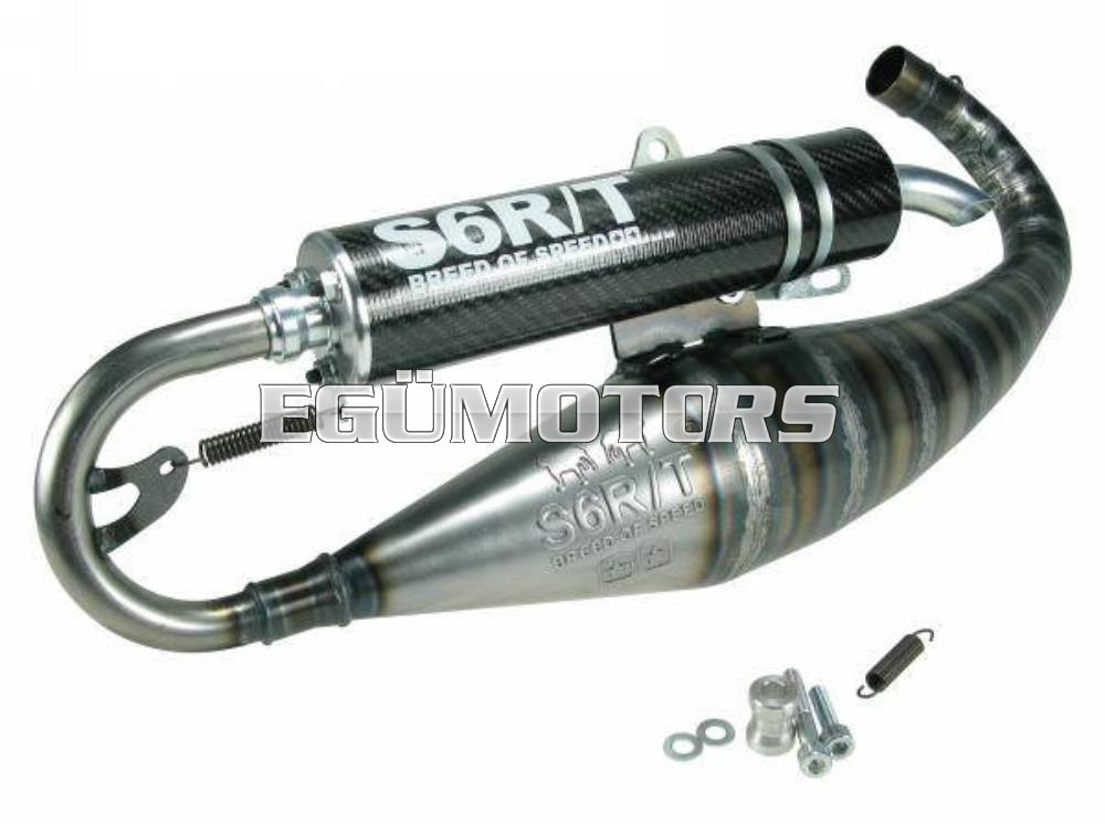 A karbon hangdobot rugó rögzíti a testhez a végeit CNC-vel munkálták meg. A két felület közé végezetül a egy gumi tömítés került a két felület tökéletes lezárása végett. Figyelem: A kipufogónak nem tartozéka a perem, mellyel a hengerhez lehet illeszteni.A felszereléshez szükséges kipufogó peremet a Stage6 R/T hengerszett tartalmazza.