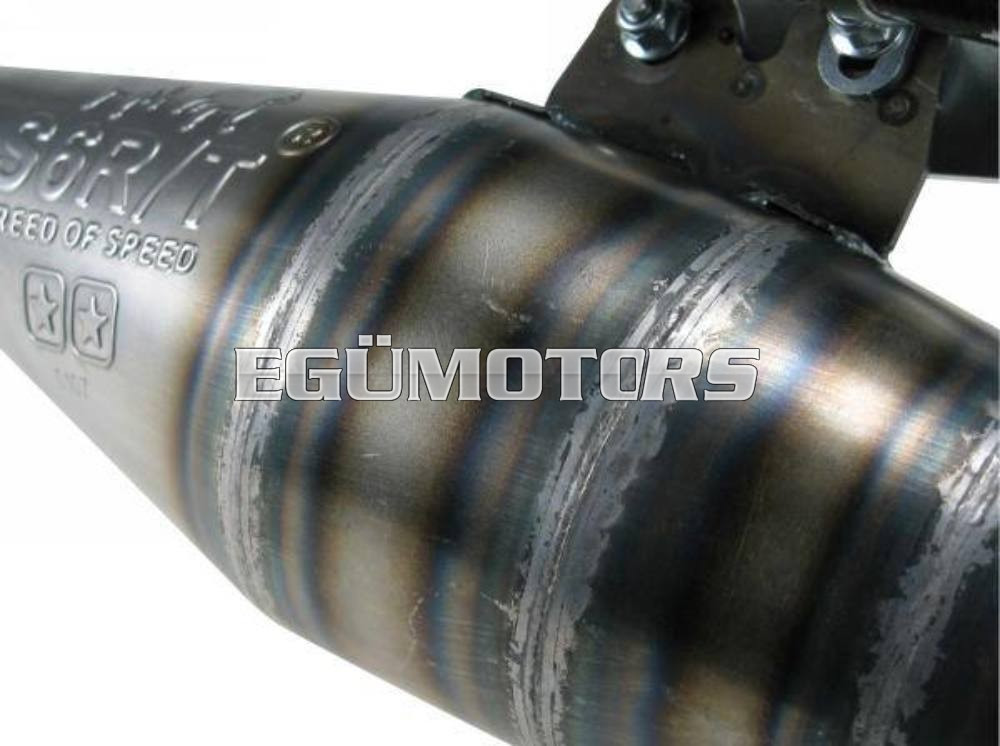 A kipufogó kialakítása és a hossza kimondottan az R/T hengerekhez lett kiszámolva, kialakítva, ezáltal a lehető legtöbbet kihozva az R/T 70ccm-es hengerből. A kipufogótest 0,8mm vastag acél lemezből készült. Teljes egészében kézzel készítik, ettől lesz igazán jó teljesítménye és ezen felül nagyon jól is néz ki.
