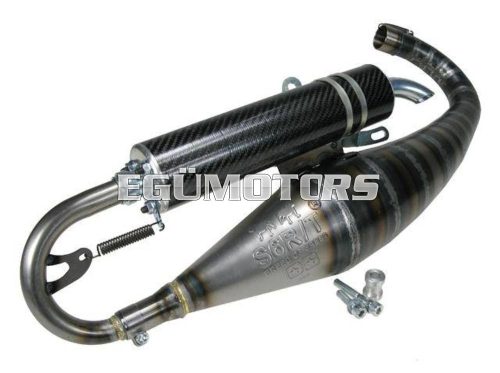Magas fordulaton üzemelõ versenycsõ, 70 ccm-es versenyhengerekhez. Nagy teljesítmény, lakozott kidolgozás, karbon véggel.
