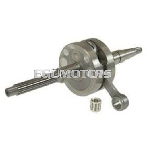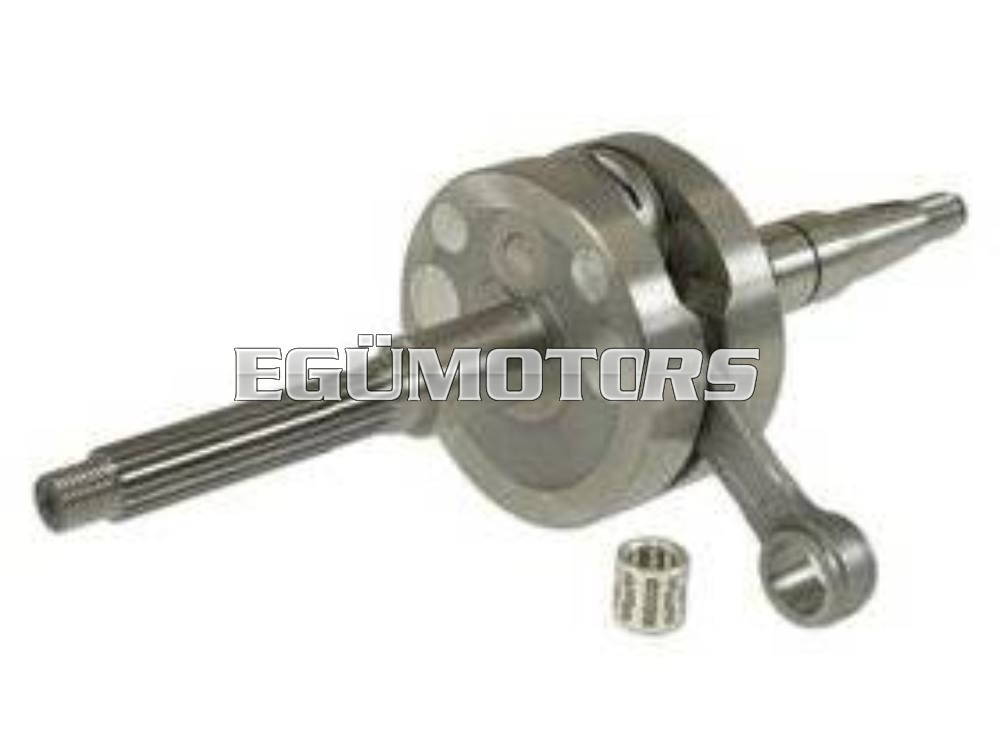A hajtókar alsó csapszege a nagyobb igénybevétel miatt 18 mm-es, a megszokott 16 mm helyett. Az erősített ezüst hézagoló lapok, a magas minőségű ezüst kosaras alsó csapágy és kovácsolt hajtókar garantálják az abszolút tartósságot és az optimális erő kihasználását versenymotoroknál. A Malossi MHR főtengelyei készülnek hasonló kialakítással.
