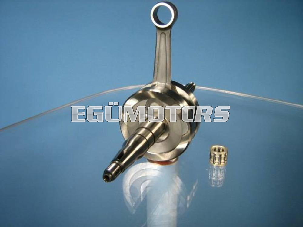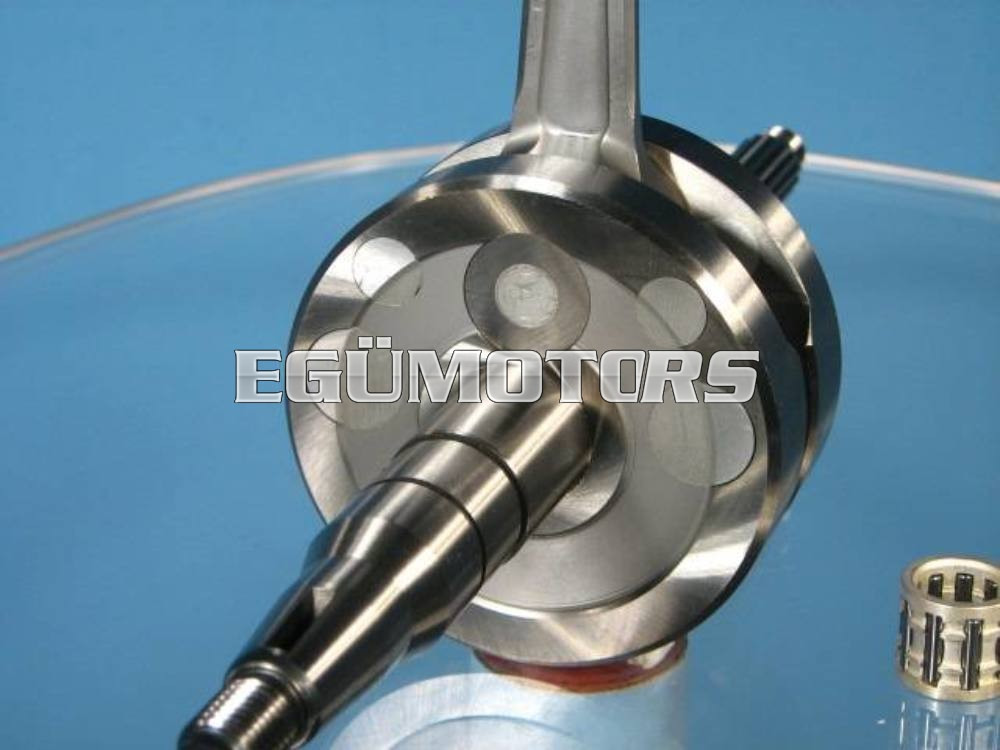 Aprólékosan, nagyon pontosan, könnyűfém betétekkel egyenként centírozott és ellenőrzött tengely! A hajtókar alsó csapszege a nagyobb igénybevétel miatt 18 mm-es, a megszokott 16 mm helyett. Az erősített ezüst hézagoló lapok, a magas minőségű ezüst kosaras alsó csapágy és kovácsolt hajtókar garantálják az abszolút tartósságot és az optimális erő kihasználását versenymotoroknál. A Malossi MHR főtengelyei készülnek hasonló kialakítással.