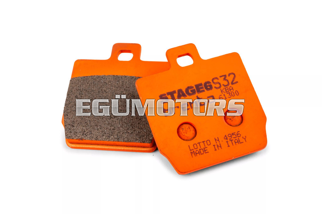 A Stage6 RACING fékbetétek a megfelelő választás mindazok számára, akik szeretik a gyors és „vad” stílust, de nem akarnak lemondani a biztonságról és a kiváló fékerőről. Minél erősebb a motor, annál fontosabb a minőségi fékbetét használata. Ezek a szinterezett fém fékbetétek kiváló fékteljesítményt és azonnali reakciót (harapást) biztosítanak, lehetővé téve a gyors és erőteljes fékezést még kedvezőtlen körülmények között is (pl. nedves vagy sáros pálya stb.). Az erős és sokoldalú fékbetétek már az első pillanattól kezdve érezhetően jobb fékteljesítményt nyújtanak.