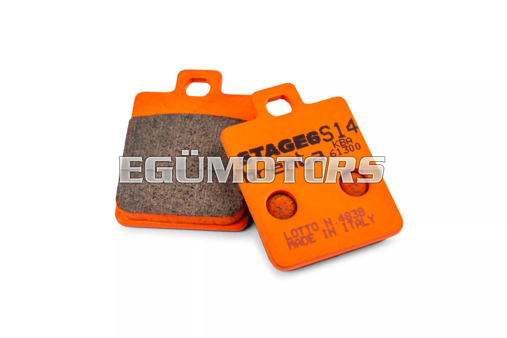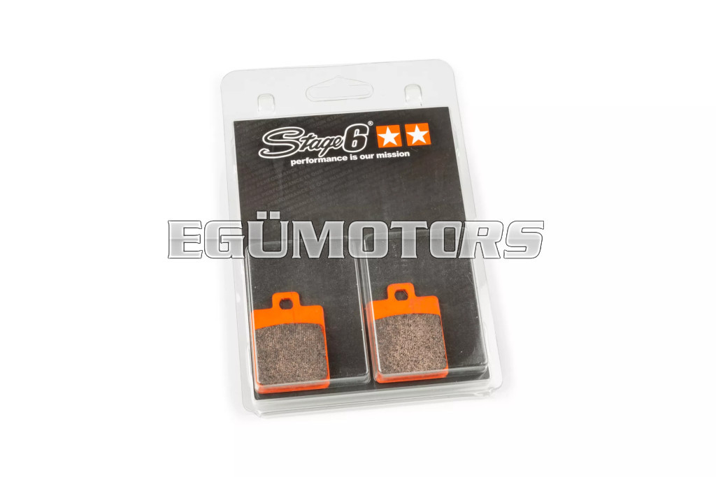 A Stage6 RACING fékbetétek a megfelelő választás mindazok számára, akik szeretik a gyors és „vad” stílust, de nem akarnak lemondani a biztonságról és a kiváló fékerőről. Minél erősebb a motor, annál fontosabb a minőségi fékbetét használata. Ezek a szinterezett fém fékbetétek kiváló fékteljesítményt és azonnali reakciót (harapást) biztosítanak, lehetővé téve a gyors és erőteljes fékezést még kedvezőtlen körülmények között is (pl. nedves vagy sáros pálya stb.). Az erős és sokoldalú fékbetétek már az első pillanattól kezdve érezhetően jobb fékteljesítményt nyújtanak.