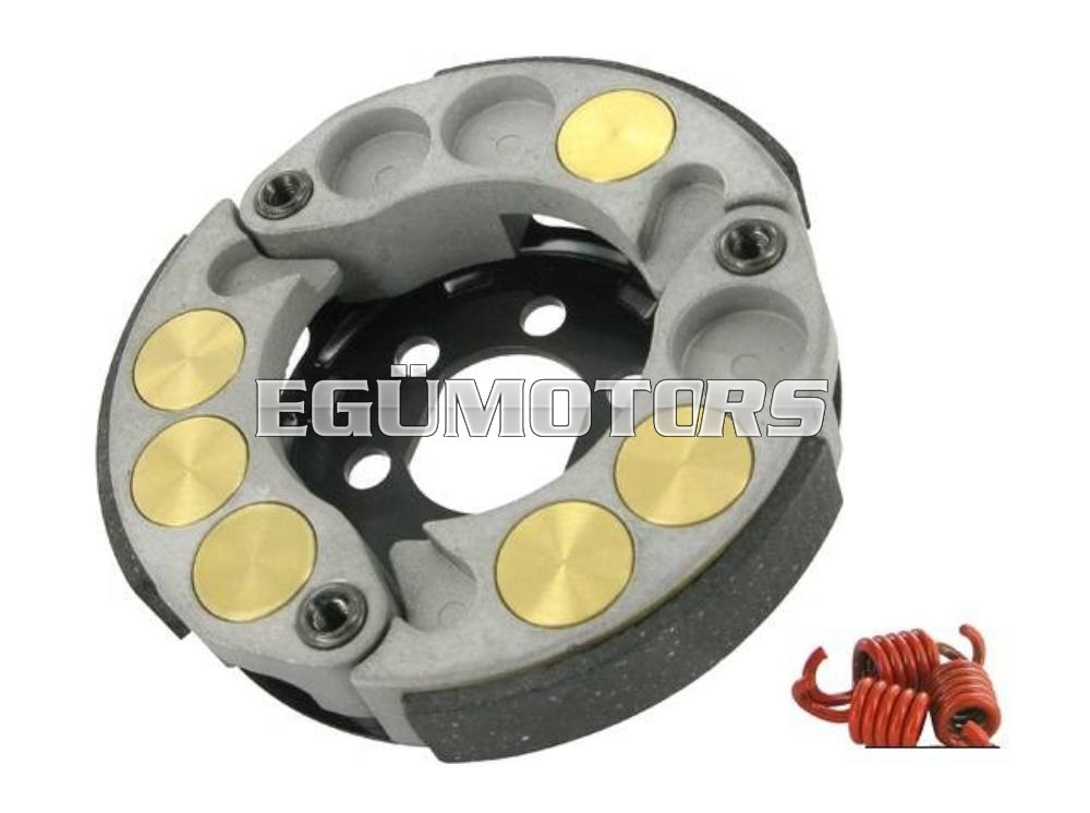 A szett tartalmazza az állításhoz szükséges imbusz kulcsokat, 2db-ot. Minden pofába 3 db, egyenként 2 gramm súlyú nehezéket helyezhetünk el. (abszolút finomhangolás!) Arra nagy figyelmet kell fordítani, hogy a súlyok száma és elhelyezkedése a pofában egyenlő és szimmetrikus kell hogy legyen. Ügyelni kell arra, hogy a rugó előfeszítést csak a skálán megadott értékek közt szabad állítani, ellenkező esetben rövidítjük a kuplung és a motor élettartamát!