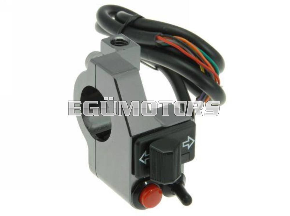 CNC technológiával készült, igényes alumínium alkatrész. A sok motoron előforduló műanyagnál lényegesen minőségibb. Irányjelző, világításkapcsoló és duda bekötése lehetséges vele. A billenőkapcsolót akár gyújtáskapcsolónak is használhatjuk, ha a CDI testelő vezeték és a váz közé sorosan építjük be! Normál, 22 mm-es kormányra könnyedén felszerelhető. M8-as menet található benne a tükör számára, esztétikus, szépen kialakított termék.