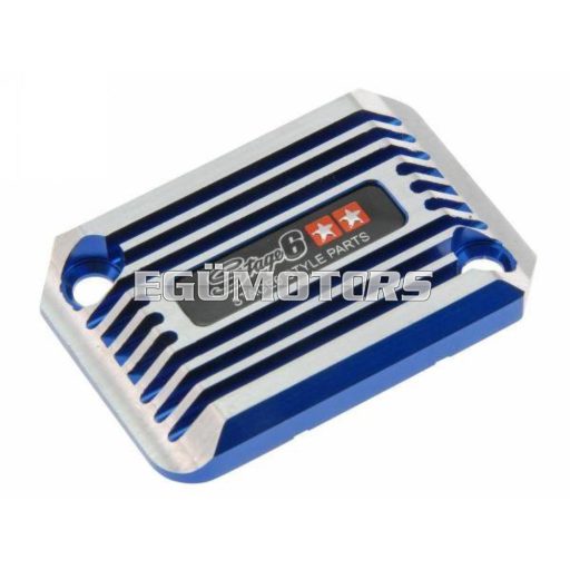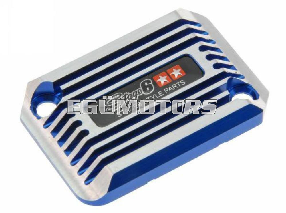 Hűtött stílusú Stage6 fékolajtartály fedél. A Stage6 új fékolajtartály fedele CNC technológiával készült, így kimondottan látványos. Egy extrém kinézetű, szemet gyönyörködtető látványú, dizájnos fedélről van szó, ami nagymértékben különbözik a piacon található tartályfedelektől. A bordázott test, a feltűnő szín és a szép kialakítás biztosan nagy feltűnést fog kelteni a robogódon!