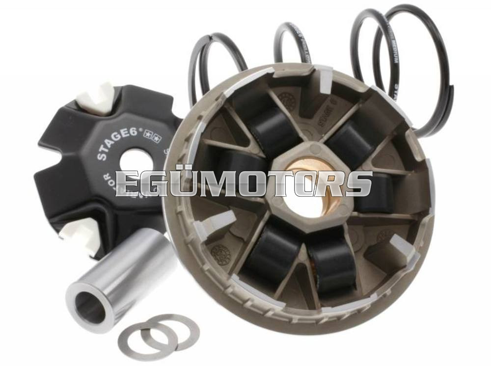 A Sport Pro variátorral a Stage6 ismét egy új terméket vett fel programjába. A Variátor gyárilag hangolt: 50ccm es henger és Stage 6 proreplica kipufogó kombinációra. (görgők és kontrasztrugó a szettben) Fejlesztve és optimalizálva viszont nagyobb hengerekre lett úgymint Stage 6 pro avagy streetrace, vagy hasonló 70-es sporthengerek.