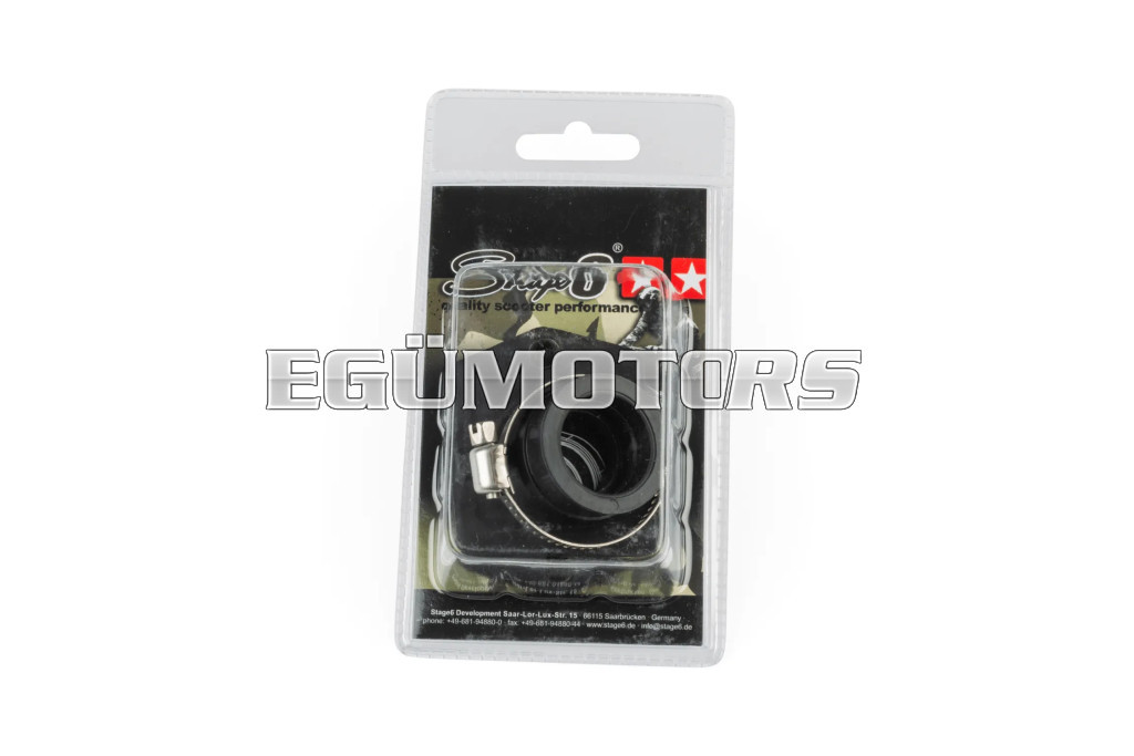 Stage6 rövid szívócsonk Piaggio blokkos robogókhoz. Anyaga a már jól ismert Viton, ami azért előnyös, mert ellenáll a benzinnél jóval erősebb anyagoknak is.