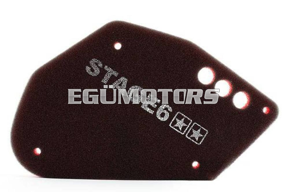 A légszűrőbetét két különböző sűrűségű szivacsból áll, együttes használata biztosítja a maximális kompromisszumot a szűrési hatékonyság és a légáteresztés között. Figyelem, beszerelés után elképzelhető, hogy a karburátor beállításain változtatni kell. Szárazon érkezik, beépítés előtt légszűrőspray-el kell kezelni.