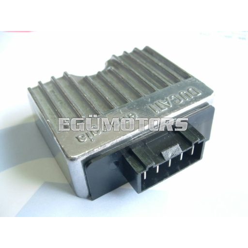 Suzuki Katana eredeti feszültség szabályozó. Jól működő robogónál optimális esetben a töltő feszültség 13,5-től 15V-ig még jónak tekinthető. Ettől eltérő értékek kedvezőtlenül befolyásolják a motor/akksi működését és élettartamát.