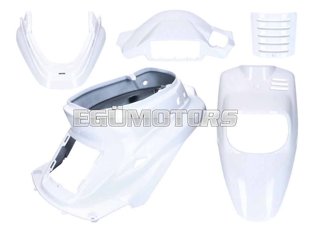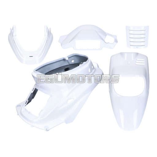 Egy készlet fehér műanyag burkolóelemből (5 darab) MBK Booster -2004 modellhez.