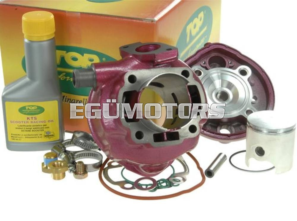 A szetthez szükséges nagyobb porlasztó, legalább 19-es Dell'Orto és verseny kipufogó is. A TOP világrekorder hengerének replicája, a Top Nardo csövével muzsikál igazán szépen és jól. Figyelem, előgyújtás megváltoztatása szükséges a beszerelési utasítás szerint, 14°-ról 17°-ra (akár eltolt ékkel, akár alaplap fordítással)