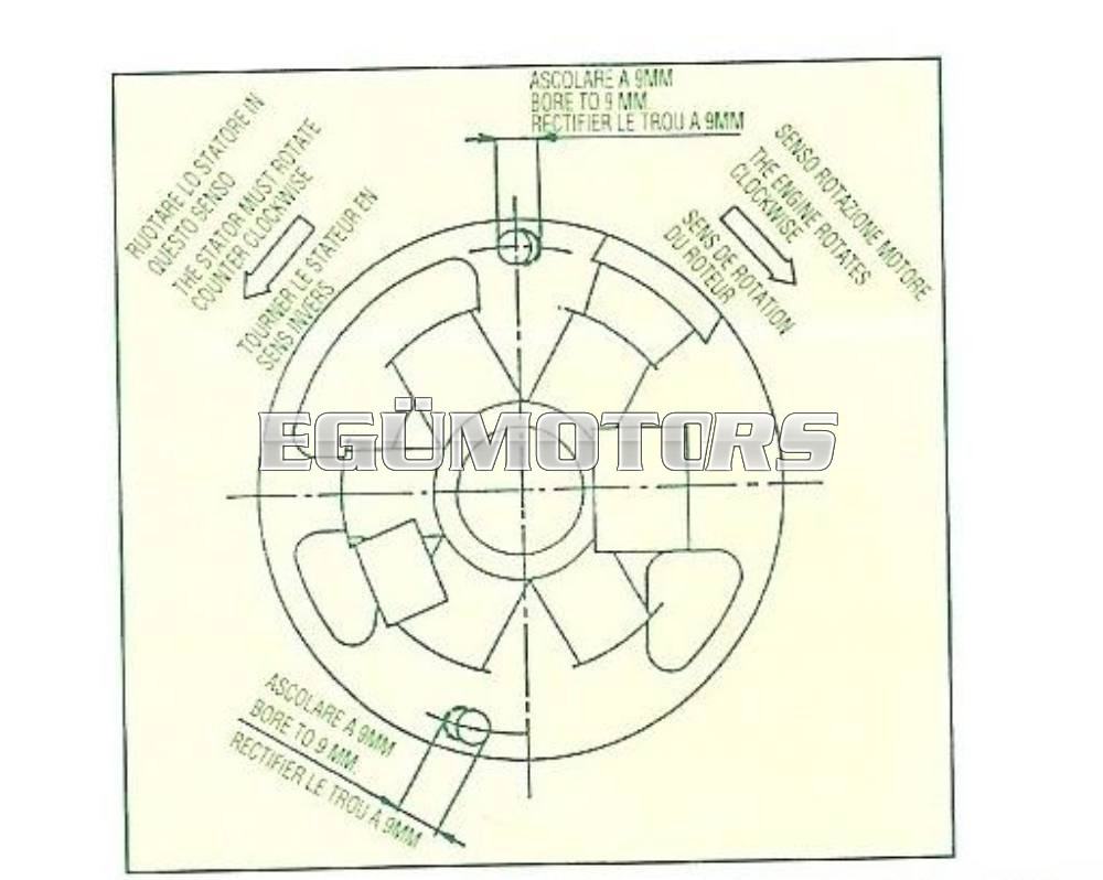 Felső holt pont előtt 0.7-ről 1.1-re szükséges állítani a előgyújtás értékét. Akinek nem áll rendelkezésére ezköz a beállításhoz, az 9mm re bővíti az alaplap rögzítő csavar furatát, és óramutatjó járásával ellentétes irányban fordít az alaplapon!