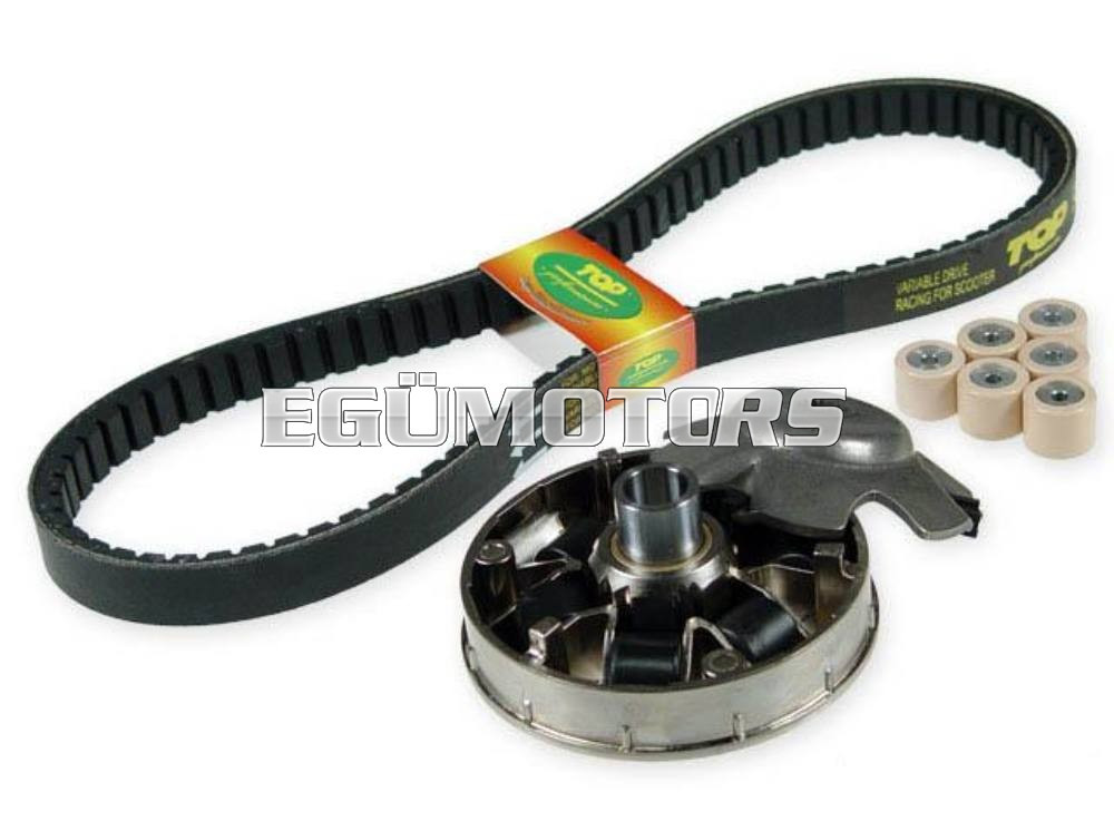 Beépítésével a variátor pontossabb működésére számíthatunk, az alkatrészek könnyű alumíniumból készültek, a felületén nagy kopásállóságú keményfém bevonattal. A szetthez tartozó 6.5 grammos görgőt célszerű 5.5 - 6.0 grammosra cserélni, a jobb teljesítmény érdekében. Az alkatrész a tönkrement (eltörött, elkopott) gyári darabot is helyettesíti, de elsősorban tuningolásra használható.