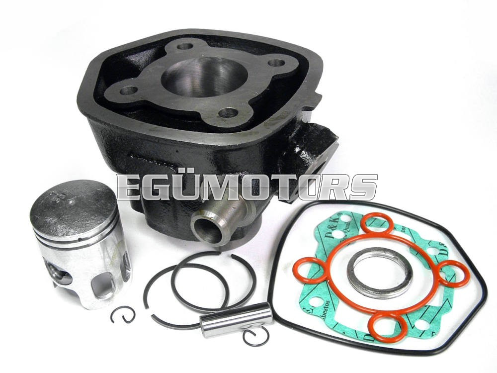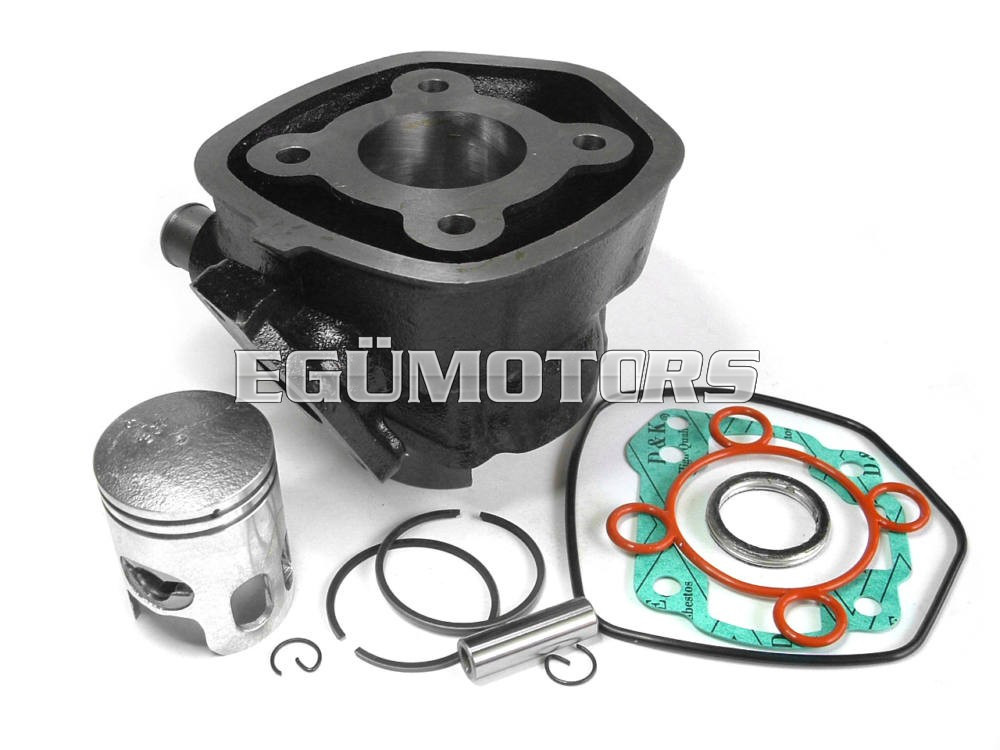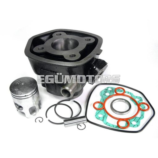 Taiwani jó minőségű 50cm3-es, vízhűtéses, fekvő Minarelli hengerszett. Jó ár/érték arányú termék, teljesítménye a gyári értéket tudja így utcán is legálisan használható. Jó minőségű dugattyúval, igényes kidolgozással előállított öntöttvas hengerszett. Gyári hengerfej tökéletesen passzol hozzá, utánmunkálást nem igényel. Élek lesorjázva.