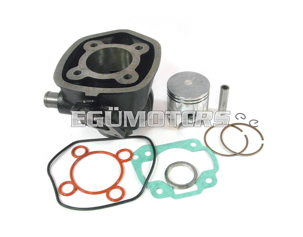 Taiwani jó minőségű 70ccm-es, vízhűtéses, fekvő Minarelli hengerszett, jó ár/érték arányú termék. A hengerfej nem része a szettnek. Jó minőségű dugattyúval, igényes kidolgozással előállított öntöttvas hengerszett, az élek is le vannak sorjázva. NEM kínai.