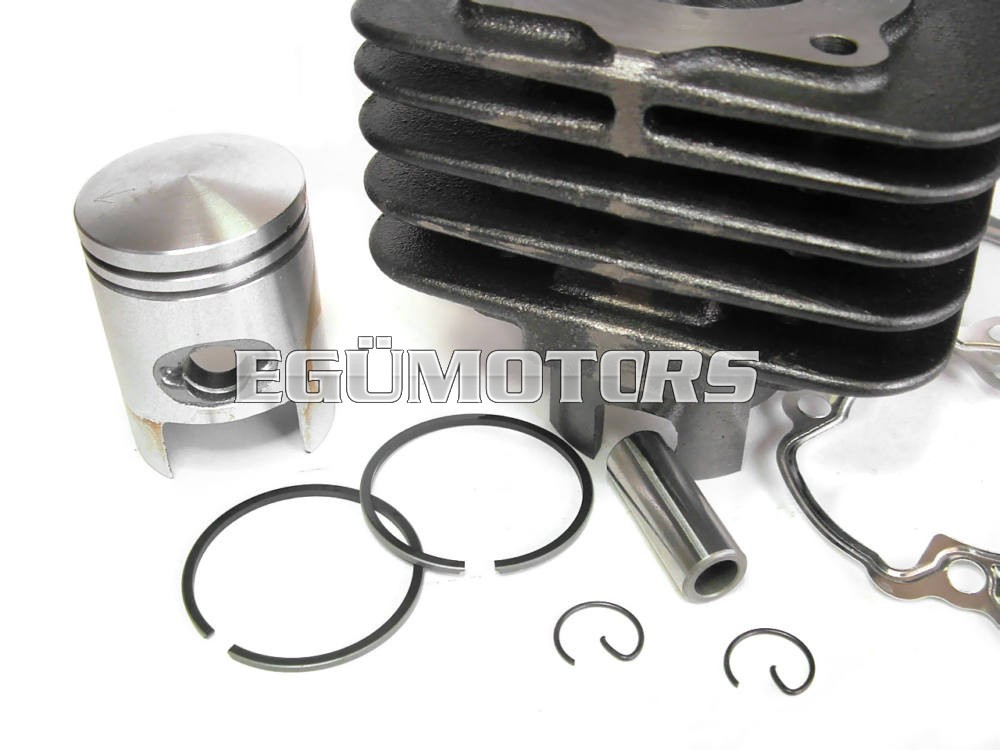 Jó dugattyúval, igényes kidolgozással előállított öntöttvas hengerszett. A gyári hengerfej tökéletesen passzol hozzá, utánmunkálást nem igényel. Élek lesorjázva, beszerelésre készen. Benzinnel való átöblítést ne felejtsük!