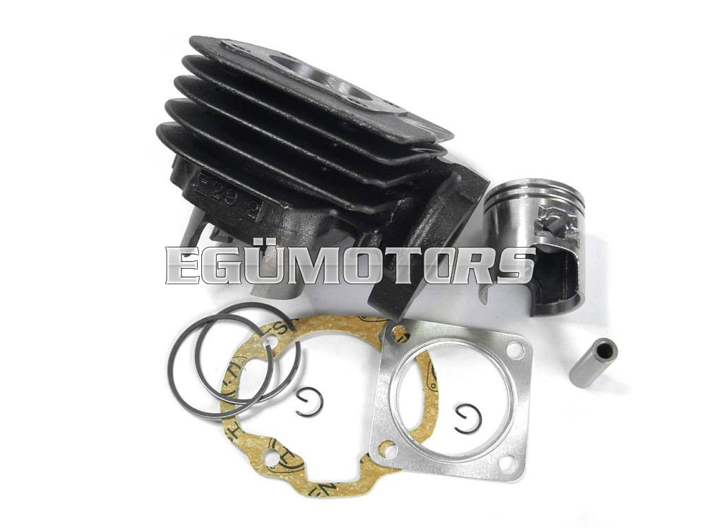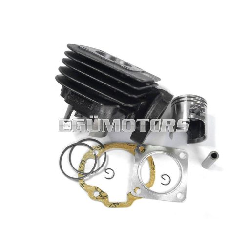 Taiwani 50ccm-es, jó minőségű 5 felömlős hengerszett. Szép igényes kidolgozás, lesorjázott élek. Nem kínai! Az átömlők egyforma magassága biztosítja a gyárival megegyező teljesítmény leadást. 10 mm-es csapszegátmérővel, 41mm-es dugattyúval, túlméretes is rendelhető hozzá.