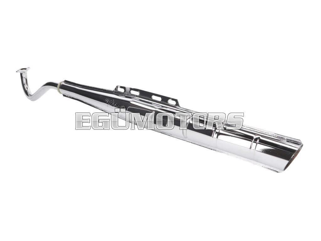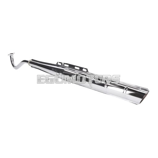 Az eredeti kipufogórendszer krómozott másolata 22 mm-es gyűjtőcsővel és 40 km/h-s változatban.