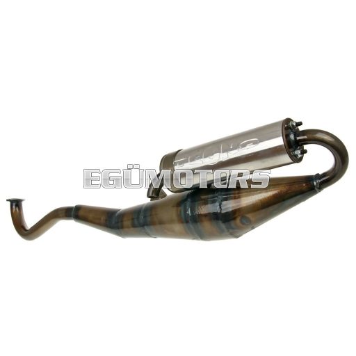 Teljesen szilárd hangolású kipufogórendszer az eredeti motorokhoz és a 70 cc-ig terjedő hengerkészlettel rendelkező motorokhoz. Jó teljesítmény és kellemes 2 ütemű hangzás.