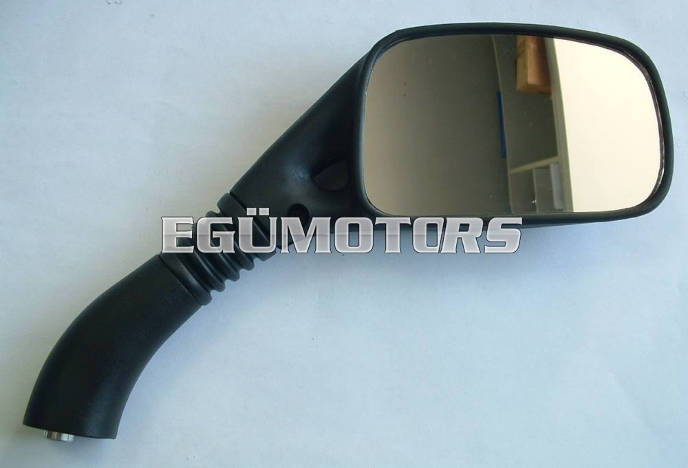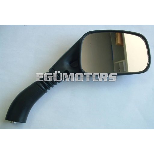 Visszapillantó tükör, robogó alkatrész. M8-as csavarral lehet rögzíteni. Fekete anyagában színezett műanyag ház.