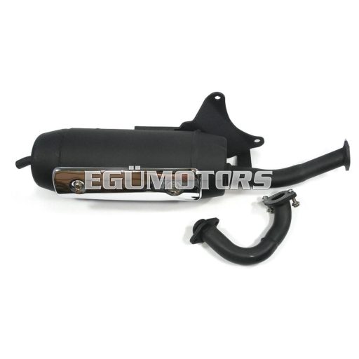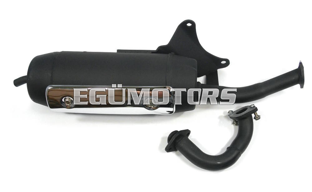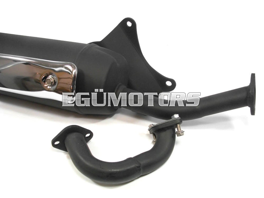 Taiwani, jó minőségű, gyári kivitelnek megfelelő, utángyártott alkatrész. A kipufogó használható a levegő és vízhűtéses modellekhez is. Mattfekete, króm hővédővel.