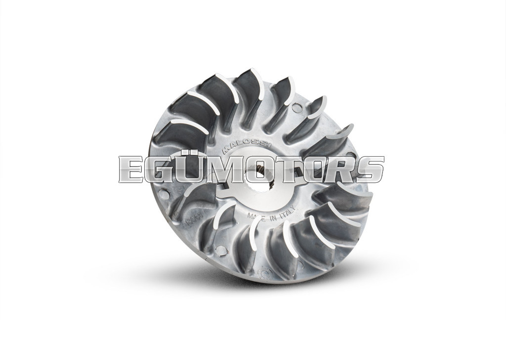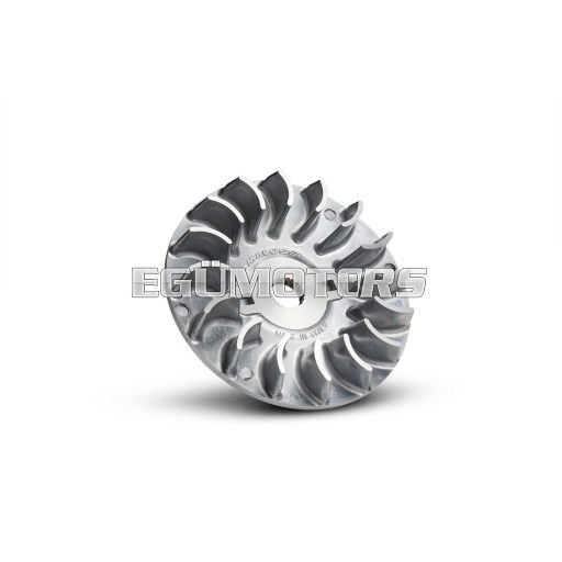 It’s a fixed half-pulley with a diamond finish of the belt-side pulley surface and a redesigned working angle to further increase the gearing range. This component completes the Multivar and renders it unparalleled. Specially designed for the line of variable-speed drives for scooters, it further improves the performance of the drive belt. It is not just a simple accessory, but a very important part for guaranteeing the long life of all the transmission components. The temperatures produced inside the crankcases where variators work with V-belts are prohibitive at critical moments and certain parts, such as transmission belts and variator rollers, sometimes suffer irreparable damage. There are cases in which the rollers could even reach the melting point. Apart from its other advantages, Ventilvar has a greater cooling capacity than the original half-pulley; that’s a result that makes it indispensable for safe and sporty driving.