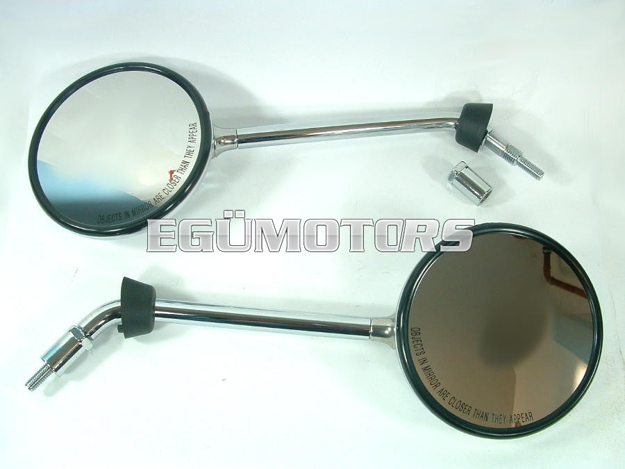 Minőségi, homolog vicma visszapillantó tükör szett, krómozott, 125mm-es fémszárral és tükör fejjel. Mindkét tükrön M8-as jobbmenet található.