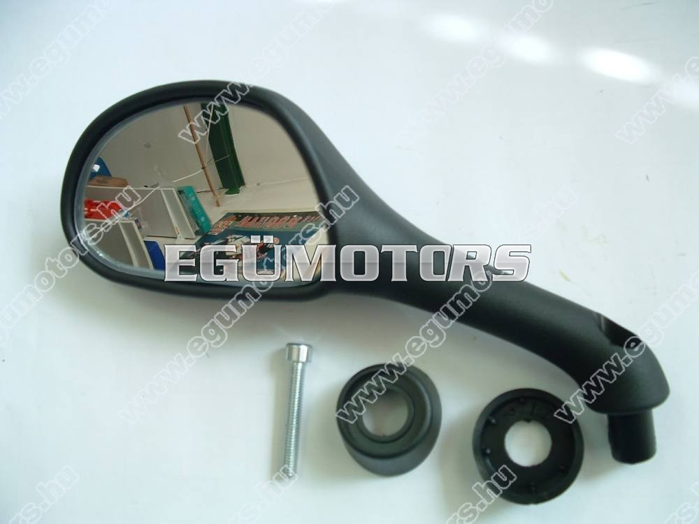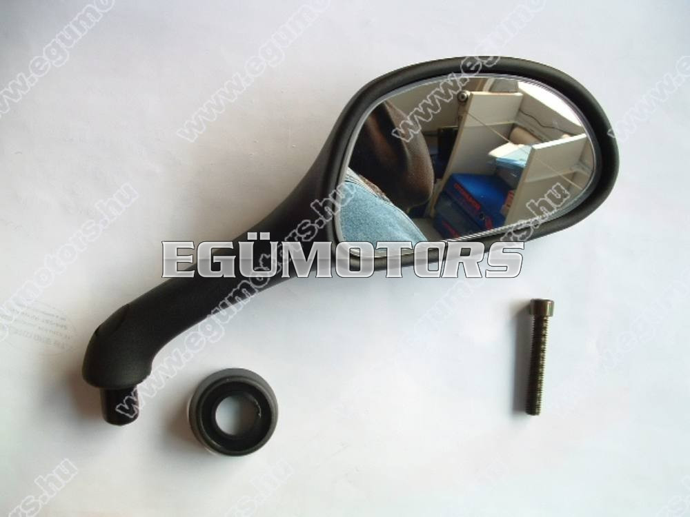 Taiwani gyártmányú, anyagában színezett, fekete visszapillantó tükör. Gyárilag szerelik ilyen formával, a Gilera és Piaggio néhány modelljét.
