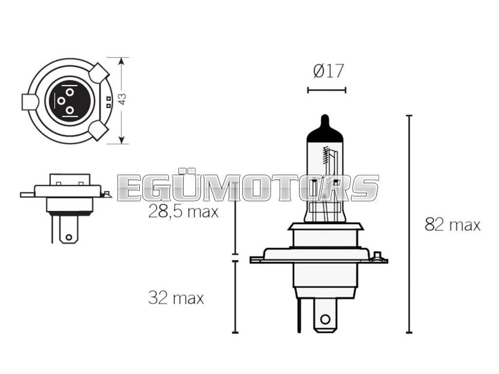Csere H4 12V 60W fényszóró izzó P43t talppal.