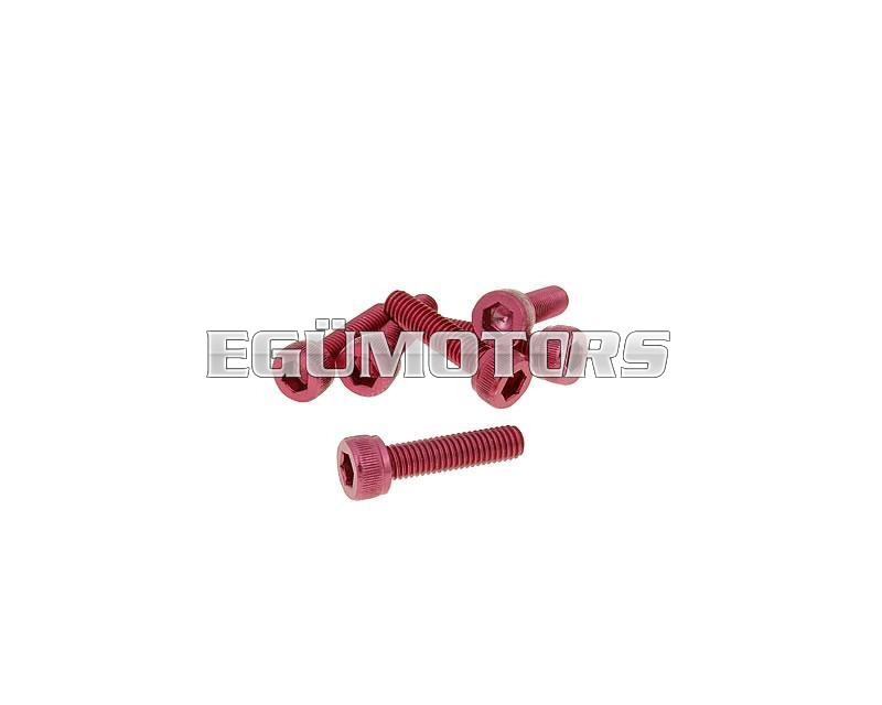 6 darabos szett, 20 mm, piros anodizált, M5 menet.