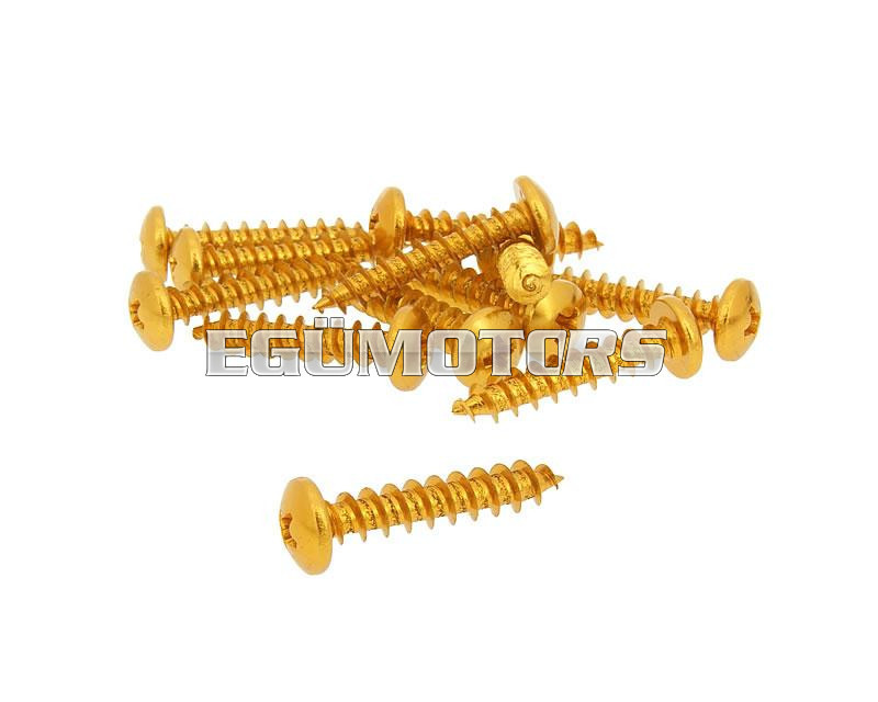 A csomag 12 darab arany anodizált csavart tartalmaz, 30 mm hosszú, M6-os menettel.