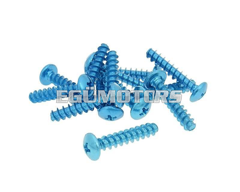 A csomag 12 darab kék anodizált csavart tartalmaz, 30 mm hosszú, M6-os menettel.