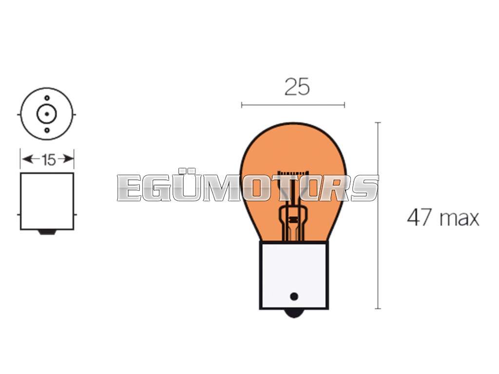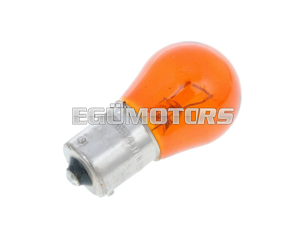 Csere PY21W narancssárga 12V 21W irányjelző izzó BAU15s foglalattal, alkalmas átlátszó lencséket használó irányjelzőkhöz.