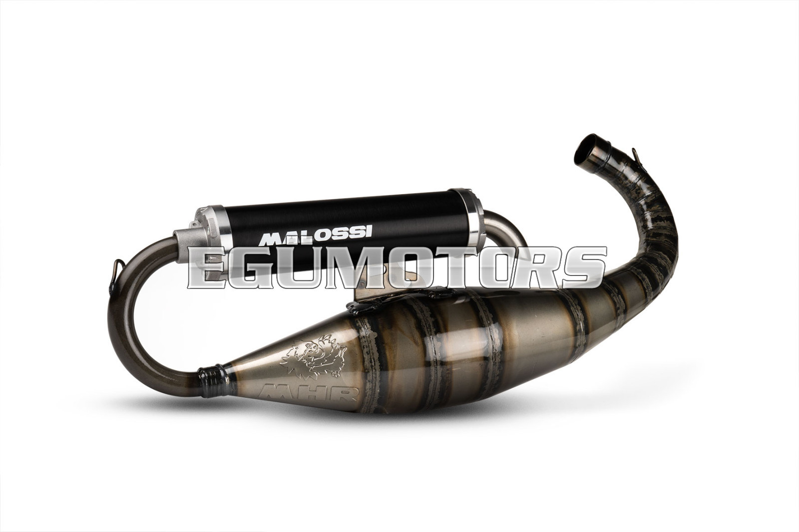 Scooter Racing Malossi exhausts are designed and built with one objective: maximum possible performance tuned to the cylinders for which they were designed. Every evolution of Malossi exhaust systems is the result of fluid dynamic research which establishes the ideal shape and size of Scooter Racing exhausts with precision.